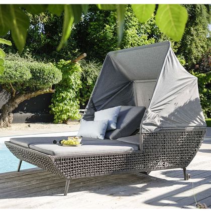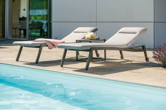 Anthrazit- und Grautöne, klare Formen und hochwertige Oberflächen sorgen für eine ruhige, elegante Outdoor-Atmosphäre. Bequeme, abgestimmte Polster laden zum Entspannen und Genießen ein.